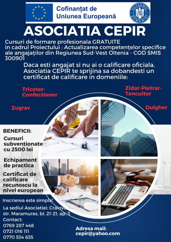 Proiectul „Formarea profesională – Viitor pentru angajare” (POCU/991/1/3/154359), implementat de CEPIR, a demonstrat impact real asupra integrării sustenabile a tinerilor NEETs din județul Dolj pe piața muncii. Chiar și după încheierea perioadei de implementare, activitățile continuă să producă efecte pozitive, prin consolidarea parteneriatelor și valorificarea experienței acumulate.